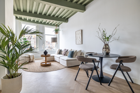 *De studio is voorzien van een mooie, eiken pvc vloer, gordijnrails en schilderijlijsten.